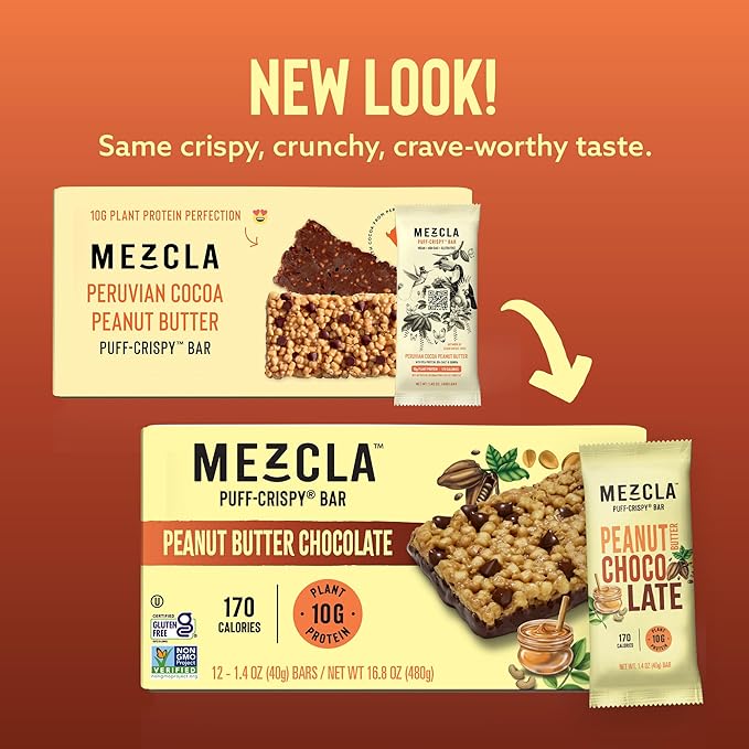 - PERFECT PUFF-CRISPY TEXTURE: Each Mezcla Protein Bar is crafted with our signature puff-crispy base made from crunchy pea crisps and quinoa. Every bite delivers a light, airy crunch that perfectly complements the smooth, creamy bottom coating and the bold flavor throughout the bar.
