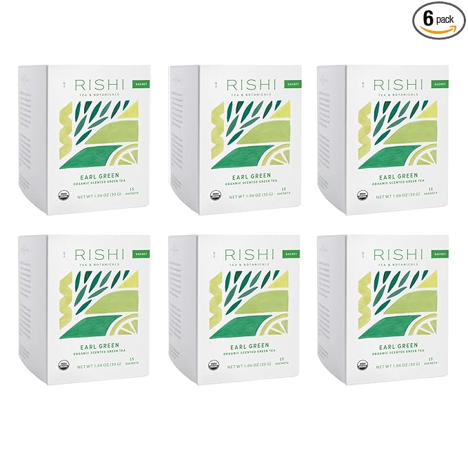 Rishi Tea Earl Japanese Green Tea with Bergamot - Organic & Low Caffeine Sachet Bags - 15 Count (Pack of 6)