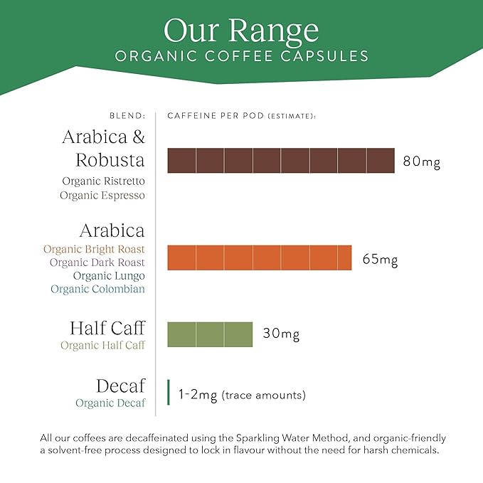 - A Deep and Full-Bodied Decaffeinated Espresso Coffee Which Can Be Enjoyed Black or as a Milky Latte. Perfect for Those Who Want the Rich Organic Coffee Taste Without the Caffeine