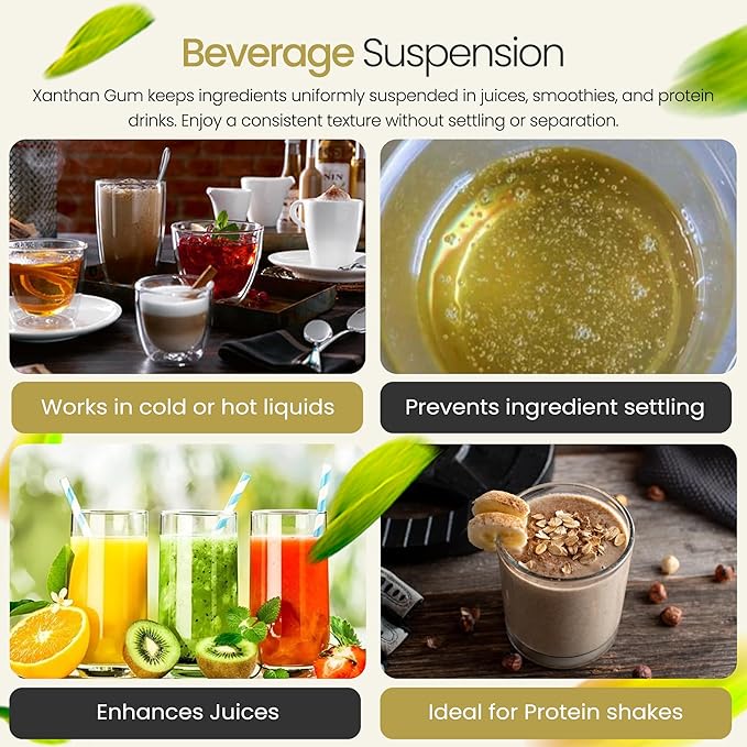 - Consistency: Say goodbye to lumps, separation, and uneven textures! Xanthan Gum ensures smooth, consistent results every time, guaranteeing professional-quality dishes that impress with both taste and presentation.