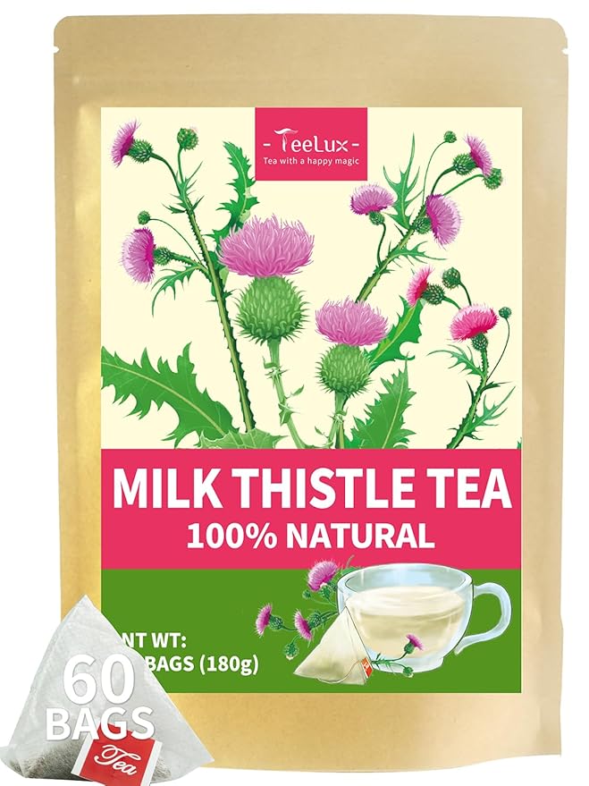 TeeLux Milk Thistle Tea Bags, 3g/bag, Natural Milk Thistle Seed Tea, Mild & Mellow Taste, Caffeine Free, 60 Count