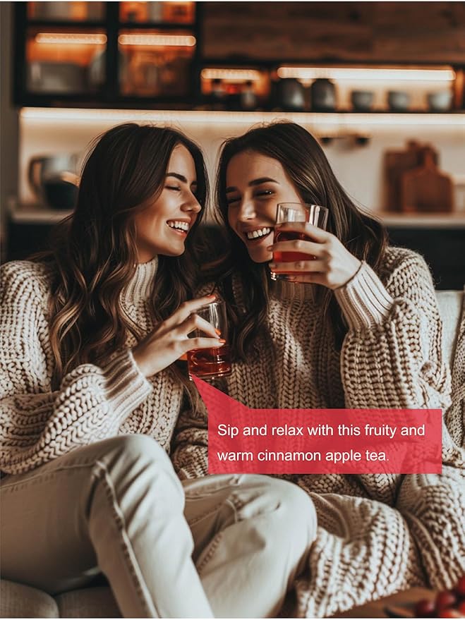 - [100% REAL & NATURAL INGREDIENTS] - This cinnamon apple tea has no added artificial flavor. The sweet & tart flavor it emits is 100% pure natural cinnamon and hibiscus taste. With a simple sip, there will be a warm & sweet flavor left on your lips and teeth.