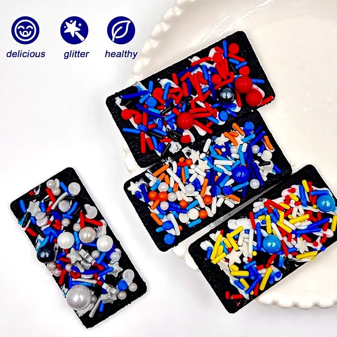 - Dynamic Sprinkle Blend: Immerse yourself in a world of vibrant colors inspired by iconic characters, offering a captivating mix for your sweet creations
