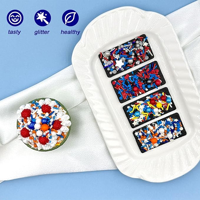 Sprinkles for Cake Decorating, Fancy Red Blue White and Orange Pearl Star Jimmies Cake Sprinkles Mix for Cookie Baking Ice Cream Cupcake