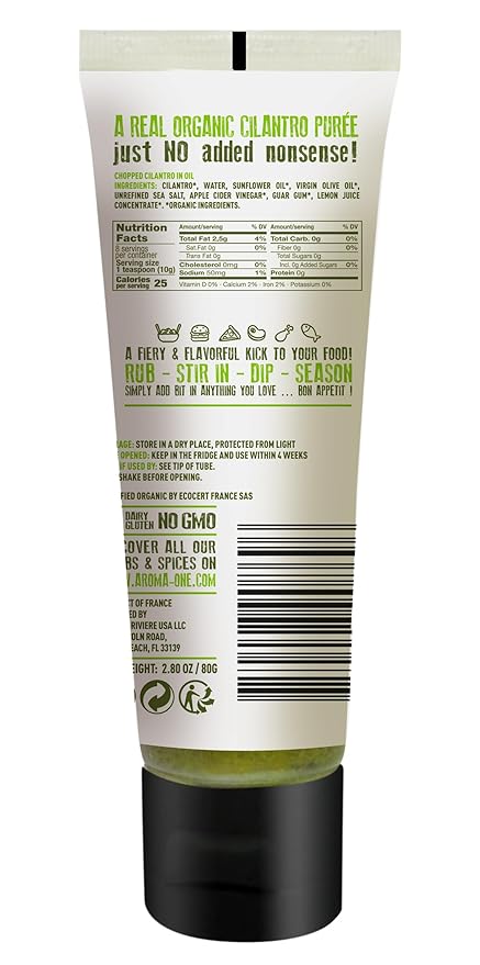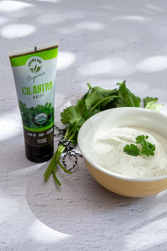 - 🌿 CILANTRO PASTE: Dive into the vibrant flavors of Asian, Oriental, and Indian cuisine with Aroma One's Organic Cilantro Puree. Crafted with organic cilantro, sunflower and extra virgin olive oils, and a hint of lemon, this puree is not just flavorful but also packed with nutrients and antioxidants. Perfect for elevating dishes with its aromatic freshness.