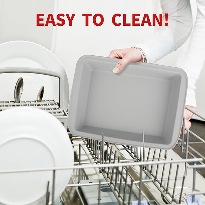 Sunsetbaby Silicone Baking Dish with Handles, Deep Rectangular Bakeware Cake Pan, Compatible with Fancy Panz, for Lasagna, Cake, Brownie or Family Dinner, 12.6 x 9.8 x 2.1 Inch (Grey)