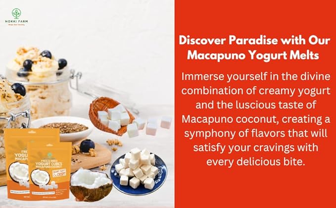 - Sensational Experience: Immerse yourself in a sensory experience like no other with our Yogurt Melts. From the moment you take your first bite, you'll be enchanted by the creamy texture, rich flavor, and exotic aroma of Macapuno coconut. It's a treat for your taste buds and a delight for your senses.