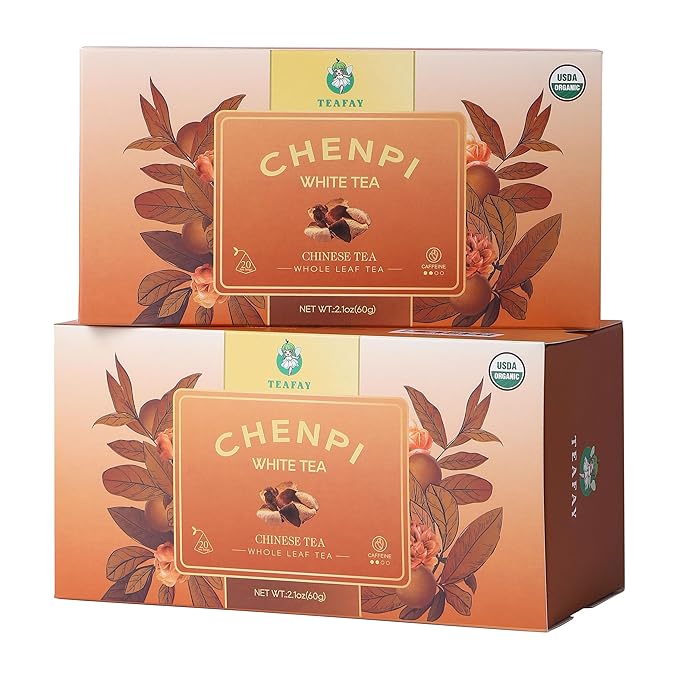 TEAFAY Organic Chenpi White Tea – 20 Count (40 Cups), 100% Natural, Handpicked, Whole Leaf Pyramid Tea Bags, Individually Wrapped, Refreshing Citrus Aroma, Caffeinated, Eco-Friendly