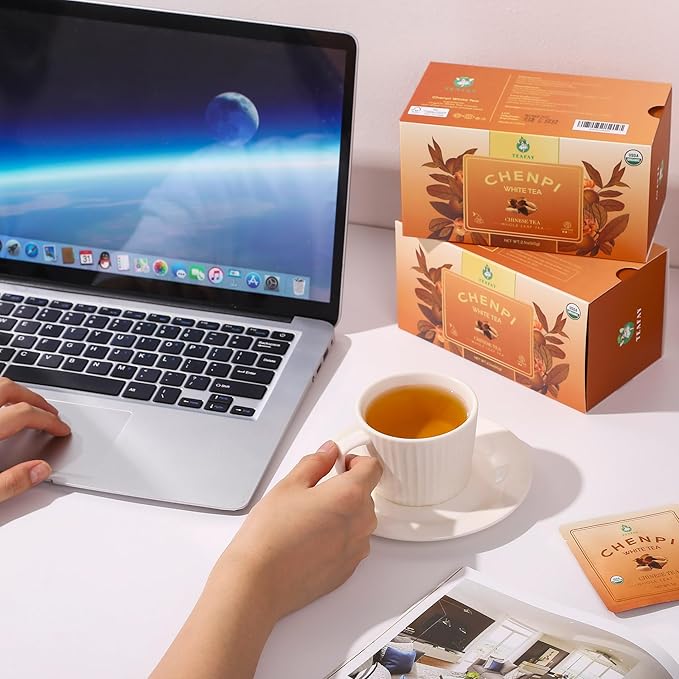 - High Quality – Our white tea is handpicked from a premium organic tea garden in China, where the ideal climate and fertile soil provide a pristine natural environment, imparting a pure flavor and exceptional quality. The chenpi (dried tangerine peel) is carefully selected from aged, specific citrus varieties and blends perfectly with the white tea, delivering a unique and layered taste experience