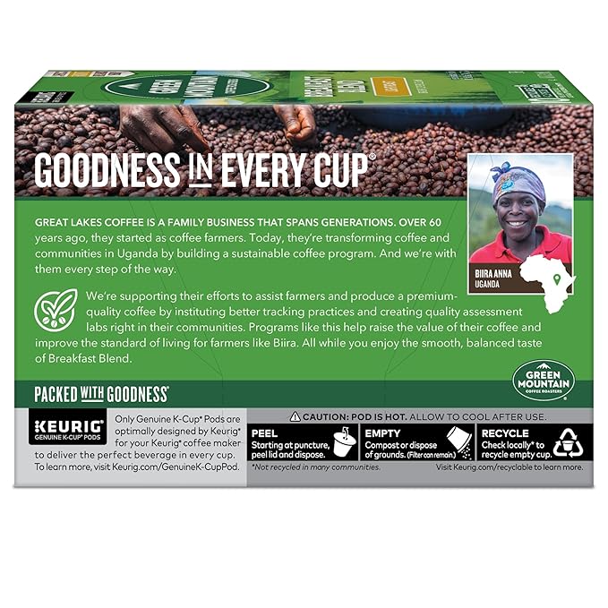 Green Mountain Coffee Roasters Breakfast Blend, Keurig Single Serve K-Cup Pods, Light Roast Coffee, 60 Count, (6 Packs of 10)