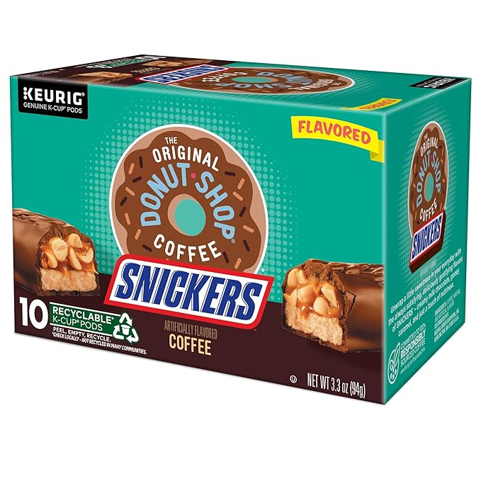 The Original Donut Shop Snickers Coffee, Keurig Single Serve K-Cup Pods, Flavored Coffee, 60 Count, (6 Packs of 10)