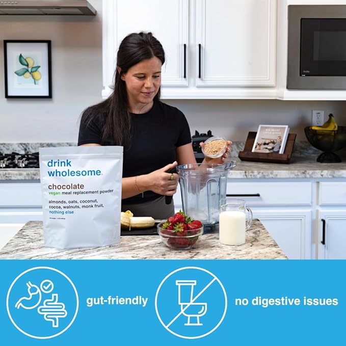 - FOR SENSITIVE STOMACHS: Drink Wholesome Vegan Chocolate Meal Replacement Powder is made for sensitive stomachs. It's an easy-to-digest meal replacement for individuals with stomach issues.