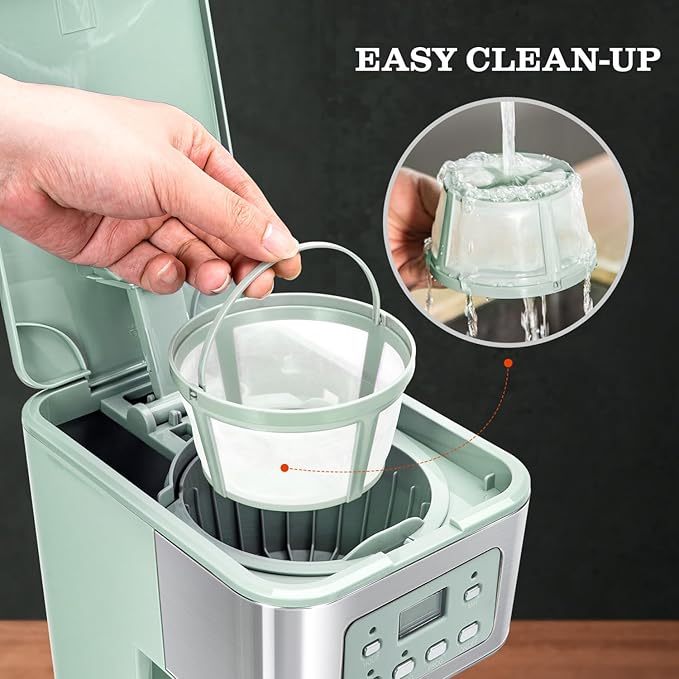 - 【BREWING STRENGTH ADJUSTMENT】The brewing strength setting in the coffee machines allows you to choose regular or bold coffee. The exclusive showerhead design evenly saturates coffee grounds, resulting in maximum flavor.The permanent filter works with your favorite coffee grounds and teas like Oolong tea, black tea, white tea