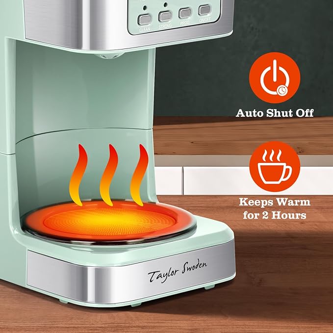 Taylor Swoden 12-Cup Programmable Coffee Maker, Regular & Strong Brew Drip Coffee Machine for Home and Office, Glass Carafe, Pause & Serve, Auto Shut Off, Green & Stainless Steel