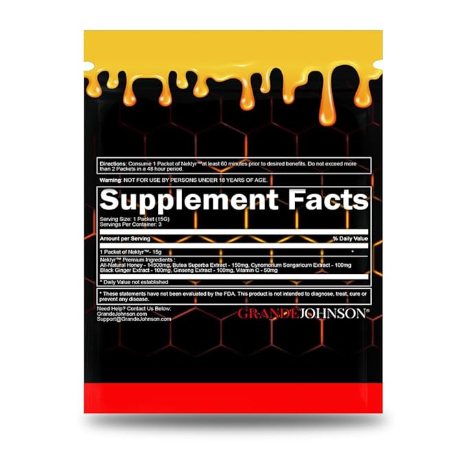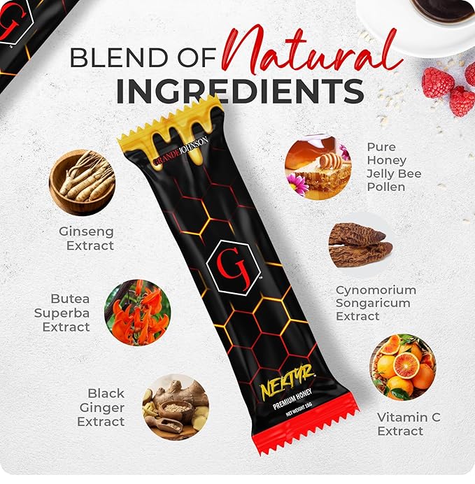 - 🌱Grande Johnson Nektyr skillfully blends the finest gifts of nature to create our Pure Premium Organic Honey. Nektyr is enriched with pure honey, Pollen jelly, Pollen jelly, Ginseng, Black Ginger Extract, Butea Superba.