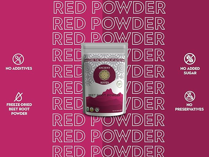Ancient Roots Beet Root Powder - Freeze - Dried, All-Natural, No Sugar Added, Heart Health Support, Help Boost Stamina Naturally, Natural Food Coloring, Beets, Bulk Size 10.5 Ounces (75 Servings)