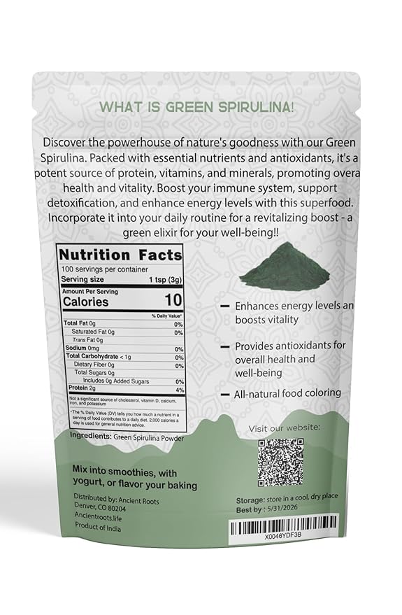 - VERSATILE INGREDIENT: Green spirulina powder can be easily added to smoothies, juices, and various recipes, making it a convenient addition to a balanced diet.