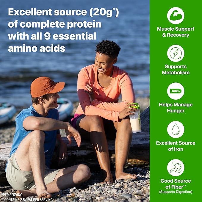 - CLEANER INGREDIENTS: 20g of organic plant protein and 1-2g of sugar per serving. Our protein blend consists of organic peas, peanut flour, brown rice, and almond protein to provide a complete protein with all nine essential amino acids.