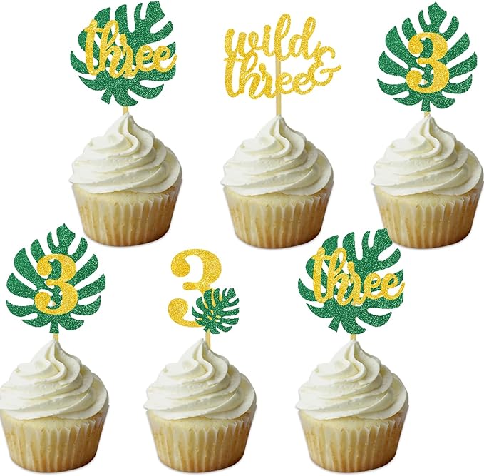 - Three wild birthday cupcake decor: 24 pcs glitter gold jungle 3 birthday cupcake Toppers, this gold three wild cupcake topper is the perfect way to add a little extra touch to the cake