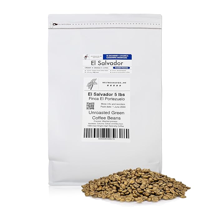 Single Origin Unroasted Green Coffee Beans, From El Salvador, Specialty Grade, Finca Portezuel, Bourbon and Caturra Varietals (5 lbs, El Salvador Honey)