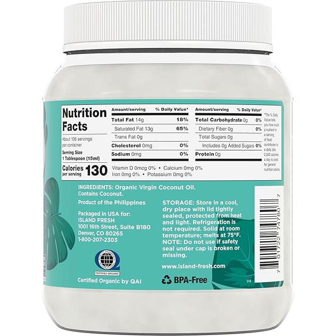 Island Fresh Organic Coconut Oil (54 oz) - Organic Virgin Coconut Oil Great for Baking, Versatile Cooking Oil, DIY Hair Oil & Skin Oil, Cold-Pressed, Certified Organic & Non-GMO (Pack of 2)