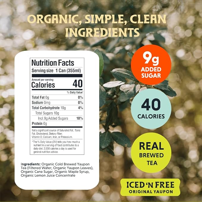 - A NEW KIND OF ICED TEA | ORIGINAL YAUPON | REFRESHING, SMOOTH, & BALANCED SWEETNESS: Enjoy American grown yaupon tea, & its cognitive & immune supporting properties for a smooth, crisp, & delicious iced tea. Iced ‘n Free is our original yaupon lemon tea, blending cold brew yaupon tea, organic maple syrup & organic cane sugar for the perfect balanced sweetness, & a touch of lemon juice for a vibrant, refreshing finish fit to accompany you throughout the day, no matter the occasion.