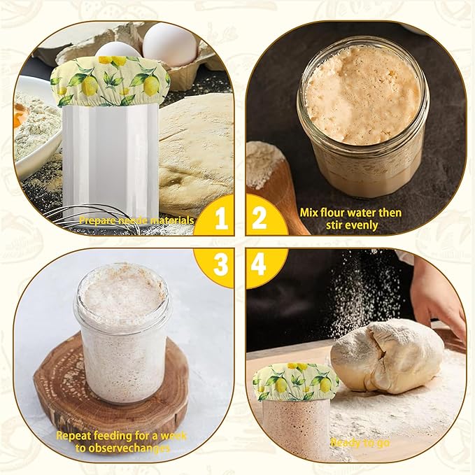 - Enhance Your Fermentation Process: Monitor your sourdough starter's progress with ease using these cloth covers. The elastic edges ensure a secure fit for optimal rising and aeration of your dough. Ideal for fermenting dough in jars.