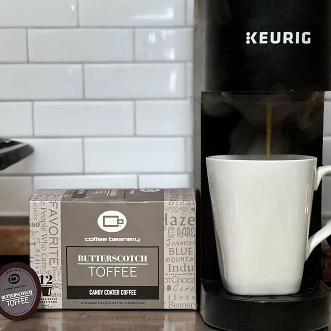 Butterscotch Toffee Flavored Coffee Pods by Coffee Beanery | Medium Roast, 12ct Specialty Arabica Gourmet Coffee