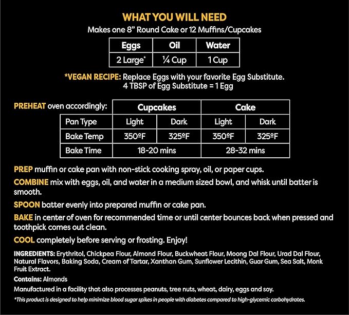 - LOW GLYCEMIC & GLUTEN FREE: Sweetened with our zero calorie, zero-glycemic Monk Fruit Sweetener and blended with high quality, gluten-free flours, TruEats French Vanilla Cupcake & Cake Mix is a great way to indulge without the guilt.