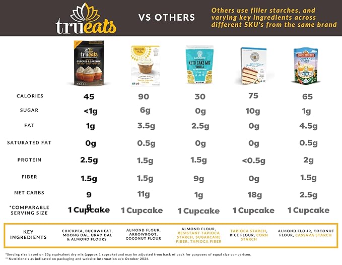 - PROTEIN & FIBER RICH: TruEats French Vanilla Cupcake & Cake Mix is crafted from carefully selected ingredients that are rich in both protein and fiber to provide great-tasting, sustained energy that will keep you going strong.