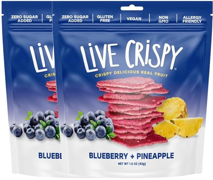 Live Crispy Fruit Chips - Pineapple-Powered Snack Packed with 100% Natural Fruit - Antioxidant-Rich, Vitamin-Packed (Blueberry/Pineapple) 2 Pack