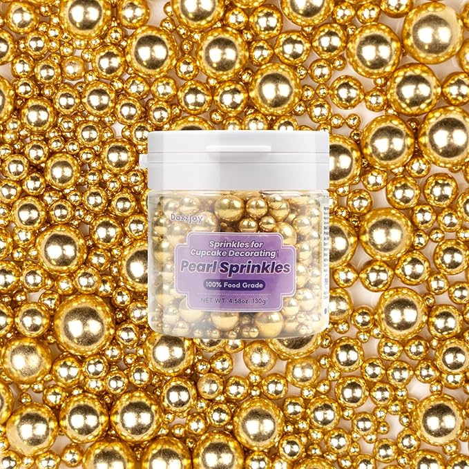 - Mix size Gold Pearl Sugar Sprinkles can meet the needs of decorative production of a variety of bakery products, with a high cost-effective. Pearl Sugar Sprinkles suitable for cakes, cookies, Ice cream, Cupcakes other Foods. 1 bottle of sugar sprinkles makes 3-5 cupcakes or one 3-inch diameter cake. After baking, you can place pearl sprinkles on top of the cake as decoration.