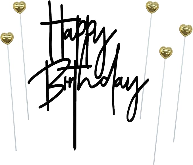 Black Happy Birthday Cake Topper Cake Cupcake Topper Decoration Birthday Cake Decorations Supplies(Black 6)