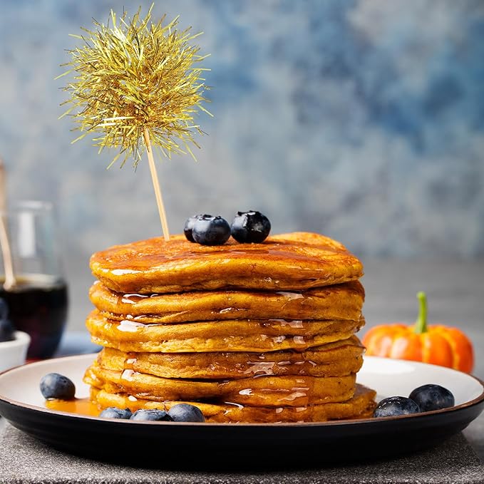 Chinco 100 Pcs Foil Firework Cupcake Toppers Sparkle Tinsel Cake Toppers Cake Decoration Cocktail Fruit Toothpick for Birthday Wedding Graduation Party (Silver, Red, Orange, Gold)