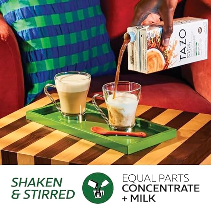 TAZO Organic Chai Latte Concentrate, Hot or Iced Black Tea, Easy-to-Serve, Everyday Lattes and Mocktails, 32 oz Carton (Pack of 2)