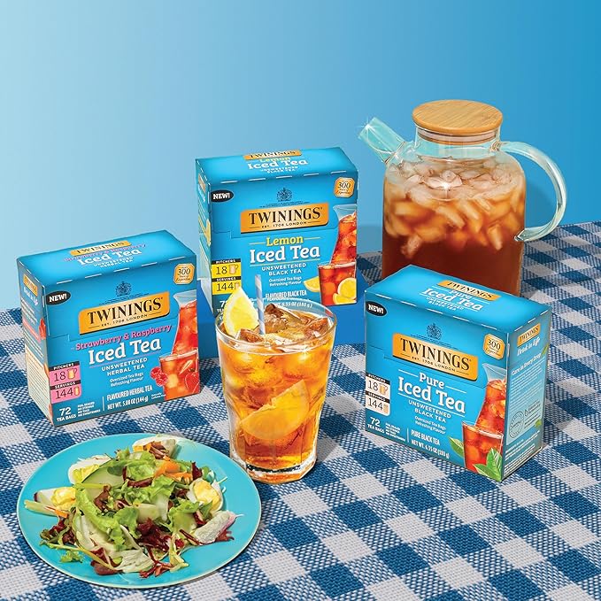Twinings Strawberry & Raspberry Herbal Iced Tea, 72 Oversized Tea Bags, Makes 18 Pitchers or 144 Servings, Unsweetened, Naturally Caffeine-Free, 72 Count (Pack of 1)