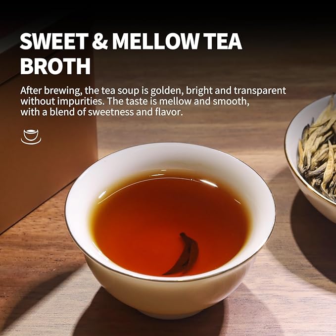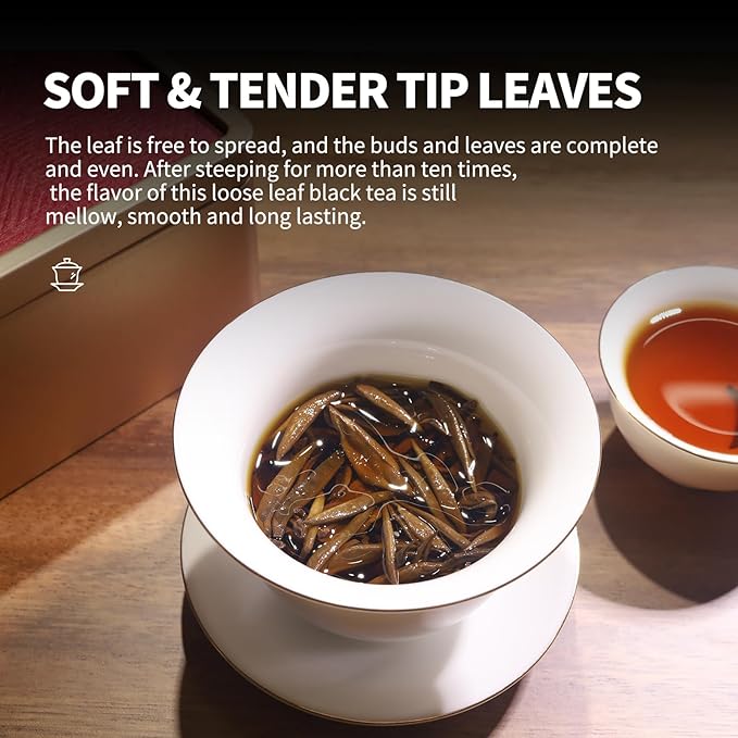 - PREMIUM SELECTION --- We use hand-picked single buds in early spring to make this tea, and strictly control the quality of the black tea leaves from the source. Each leaf is covered with golden-colored fuzz, with full bud tips and rich inner texture. The premium black tea is more complex in the production process to ensure that the taste tea broth meets the standard of premium black tea.