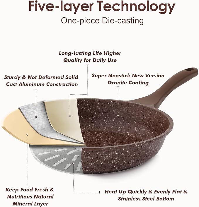 - HEALTHY COOKWARE SET - Made of quality granite nonstick material, it is free of intentionally added PFOA, PFOS, lead, and cadmium, ensuring safety and health.