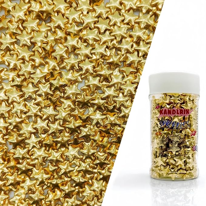 10mm Super Gold Stars Sprinkles Edible Stars Cake Decorating Stars Cake Decorations Cupcake Toppers Cookie Decorating Perfect for Cakes,Cupcakes,Desserts Toppings 3OZ