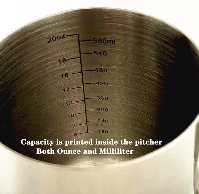 - ERGONOMIC HANDLE: Well-balanced grip design ensures comfortable and precise pouring while steaming and frothing milk