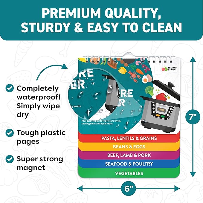 - Instant Pressure Cooker Magnet contains over 100 food entries in 6 sections, providing simple, clear instructions with cooking times, liquid needed, pressure level & release mode. Also includes instant pot high-altitude cooking guide & an extensive vegan-friendly section. Simplify complex dishes & start preparing healthy meals for you and your family.