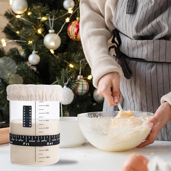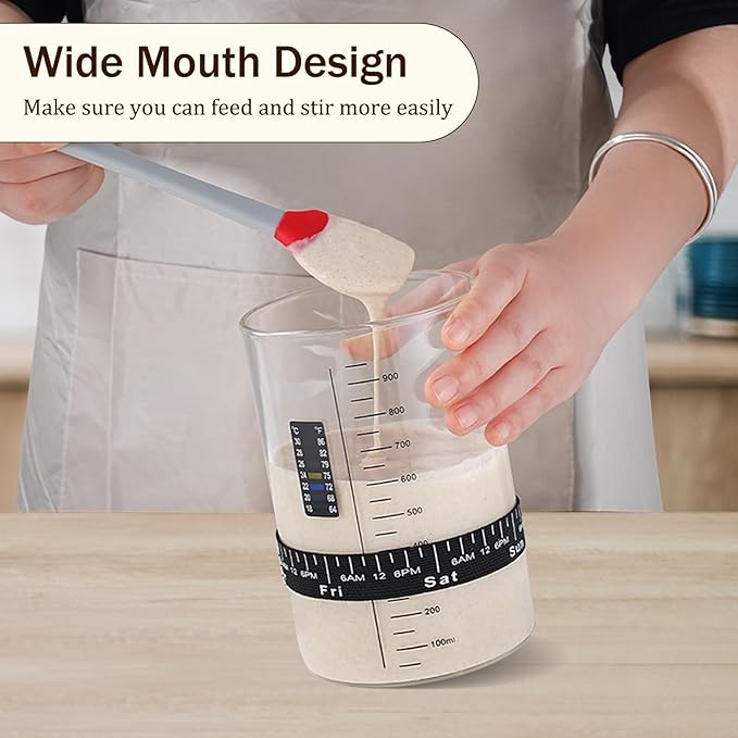 - Easy to Track and Maintain: The dated feeding band can help you know when you last fed and the feeding level, and the clear sourdough jar allows you to watch changes in your starter so you can easily track the growth of your starter