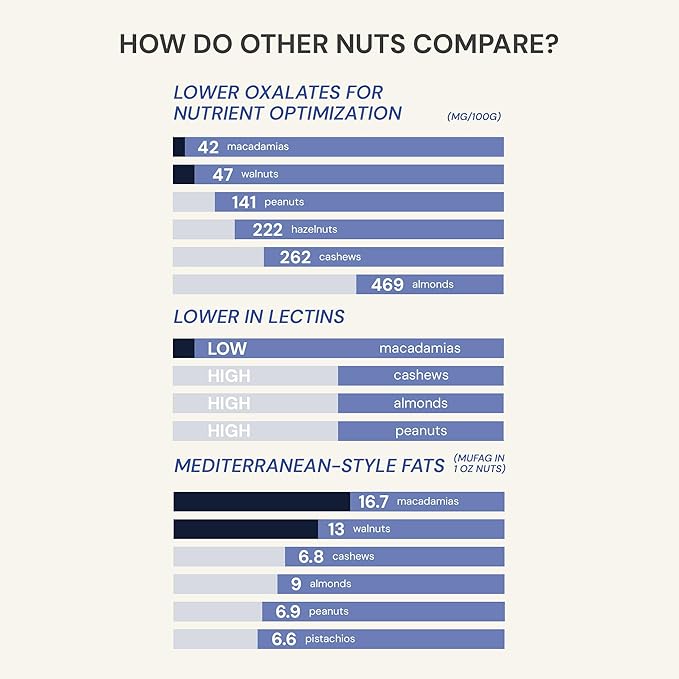- Just 3 Ingredients: Macadamia nuts, walnuts, and blueberries. No filler ingredients, added sugars or artificial preservatives.*