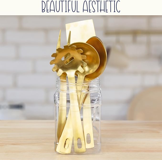 Darware Complete Serving Spoon & Utensil Set (6-Piece Set, Gold); w/Pasta Server, Fork, Spoon, Slotted Spoon, Ladle, & Cake/Casserole Server, SH_2629