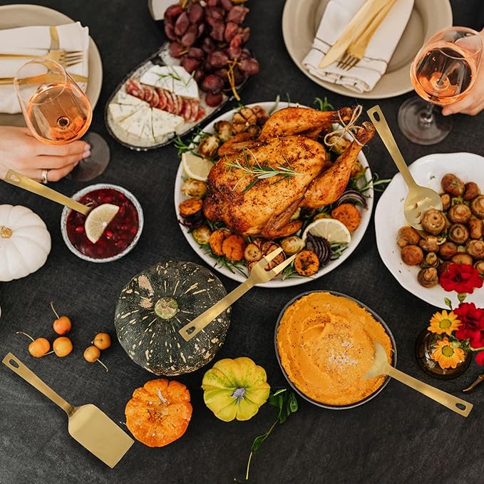- Elegant 6-Utensil Set: Includes spoon, slotted spoon, two-prong fork, pasta server, ladle, and cake/casserole server
