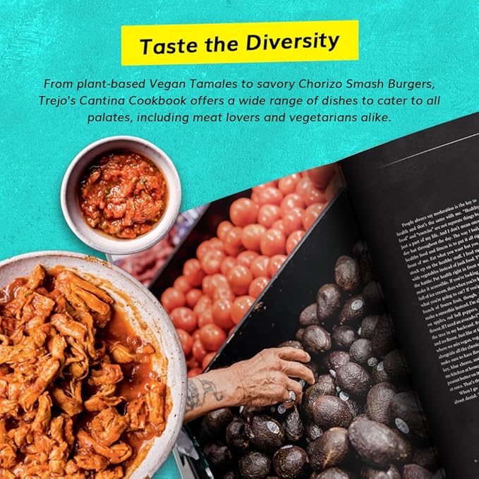 - TASTE THE DIVERSITY: From plant-based Vegan Tamales to savory Chorizo Smash Burgers, Trejo's Cantina Cookbook offers a wide range of dishes to cater to all palates, including meat lovers and vegetarians alike.