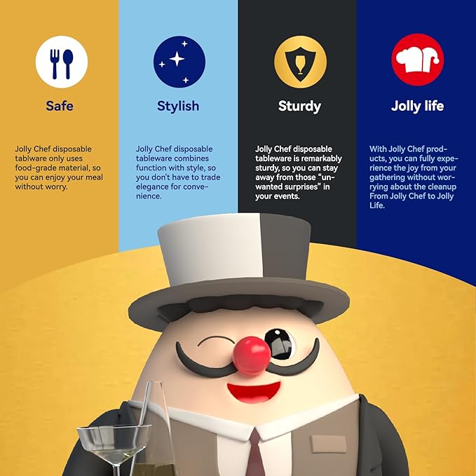JOLLY CHEF 24 Pack Stemless Plastic Champagne Flutes Disposable 9 Oz Gold Rim Clear Plastic Toasting Glasses Shatterproof Recyclable