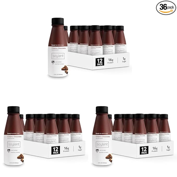 Soylent Chocolate Meal Replacement Shake, Contains 16g Complete Vegan Protein, Ready-to-Drink, 11oz, 36 Pack