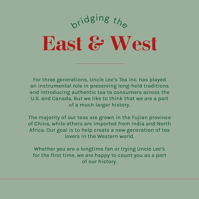 - A TEA COMPANY YOU CAN TRUST: All the organic and kosher-certified teas in this unique collection are hand-inspected by the tea experts at Uncle Lee’s to ensure maximum goodness and purity.