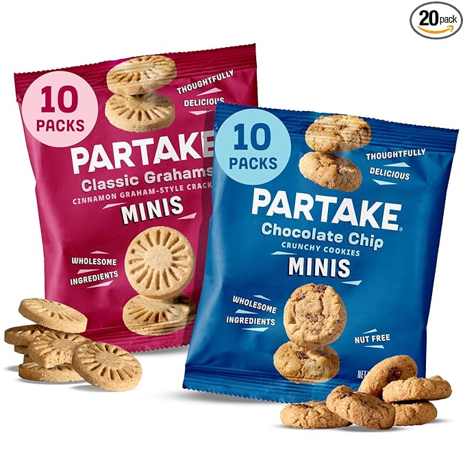 Partake Gluten Free Crunchy Chocolate Chip Cookies + Classic Graham Crackers Variety Pack - Vegan - Free From the Top 9 Allergens Including Dairy, Wheat, Soy, Eggs, & Peanuts - Non GMO - Safe School & Office Snack (20 Packs, 0.67 oz)